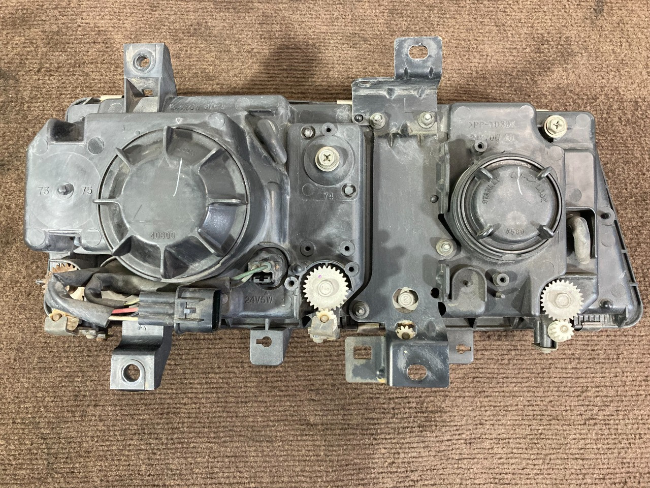 レンズ:ガラス/ レベライザー無し/ リフレクター焼け・劣化あり/ レンズ表面飛び石傷あり/ レンズ内側傷あり/ 光軸調整ダイヤル固着無し