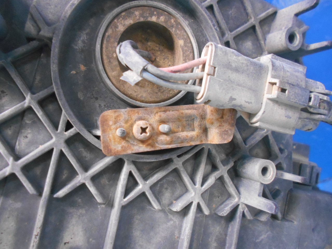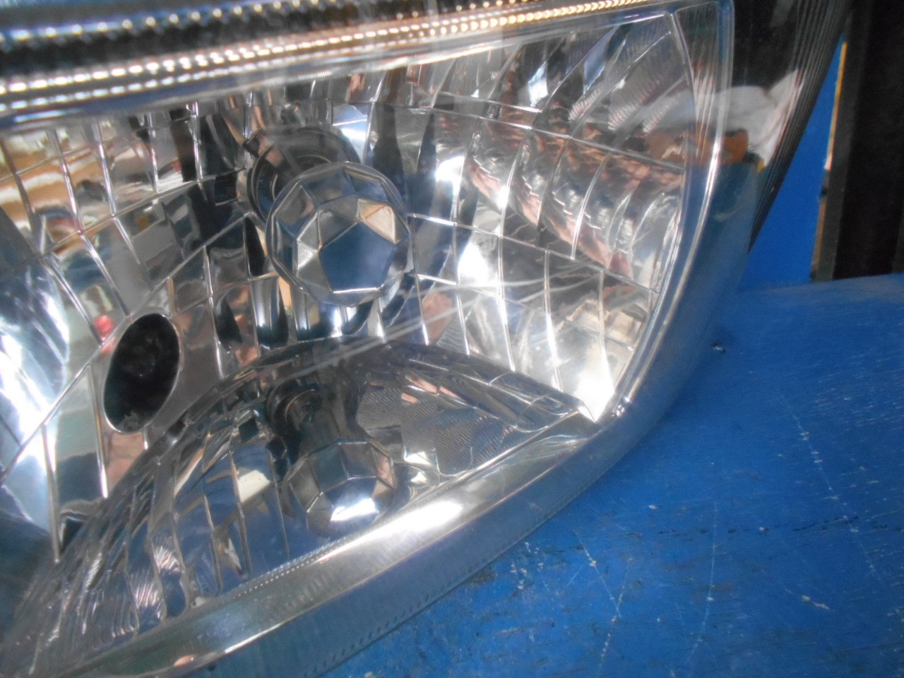 ハロゲン、レベ付、光軸OK、レンズに線キズ有、ポジション上側焼け有、ブラケット錆び有