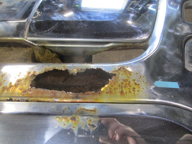 ①凹み17㎝×8㎝/②錆穴30㎝×10㎝/③錆穴1㎝×5㎜/錆ヤセ17㎝×10㎝
