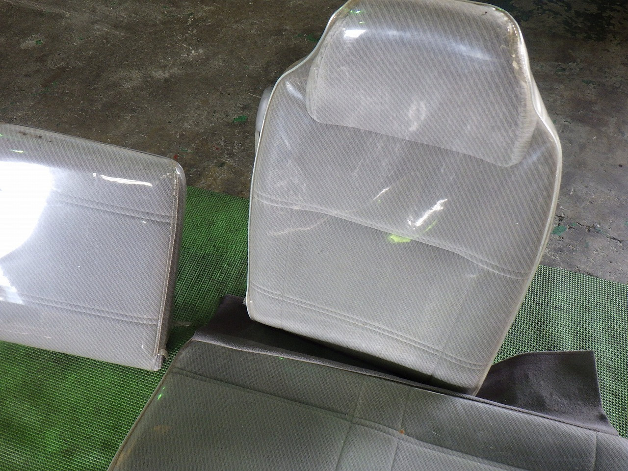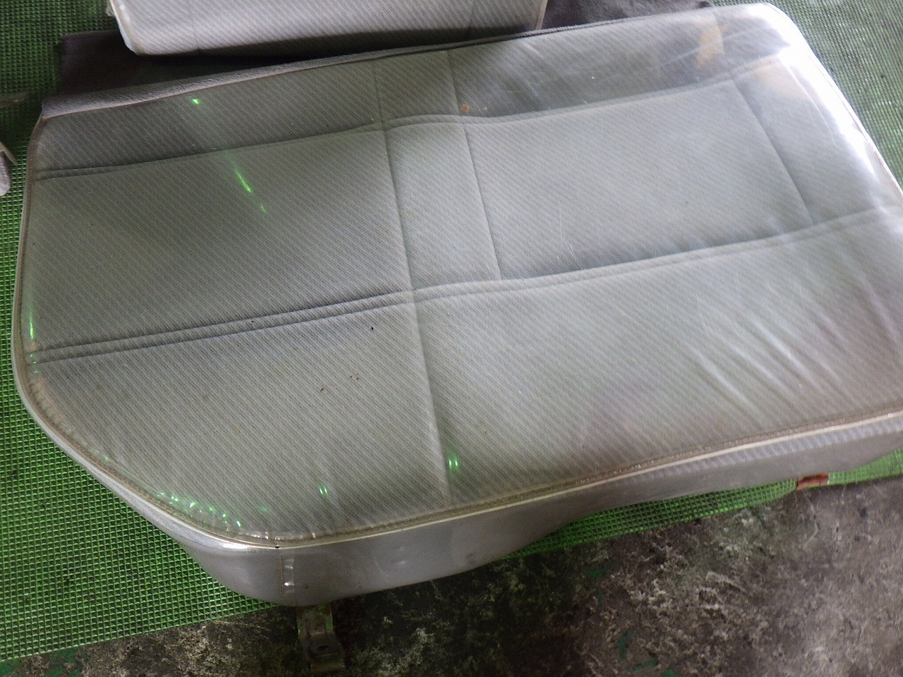 ベージュ系/布製/少々汚れあり/ビニールカバー付き/土台ブラケット無し/背もたれ(W614-57-180B 05 )真ん中(W614-57-1E0A 05)