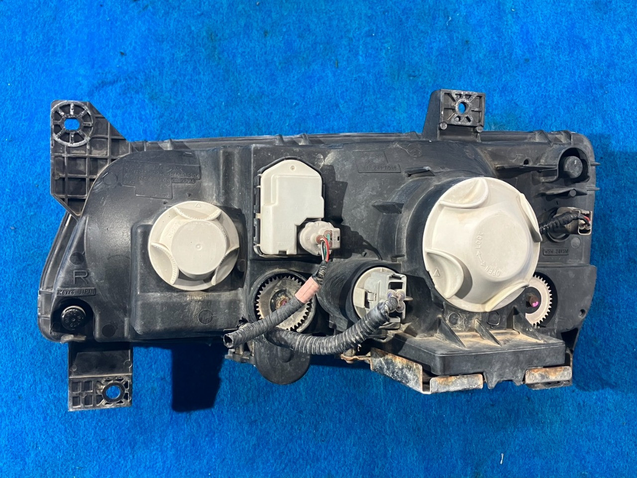 HID、レベライザー付、KOITO、100-87909、リフレクター軽い焼け、全体細かい飛び石多数、250758-005