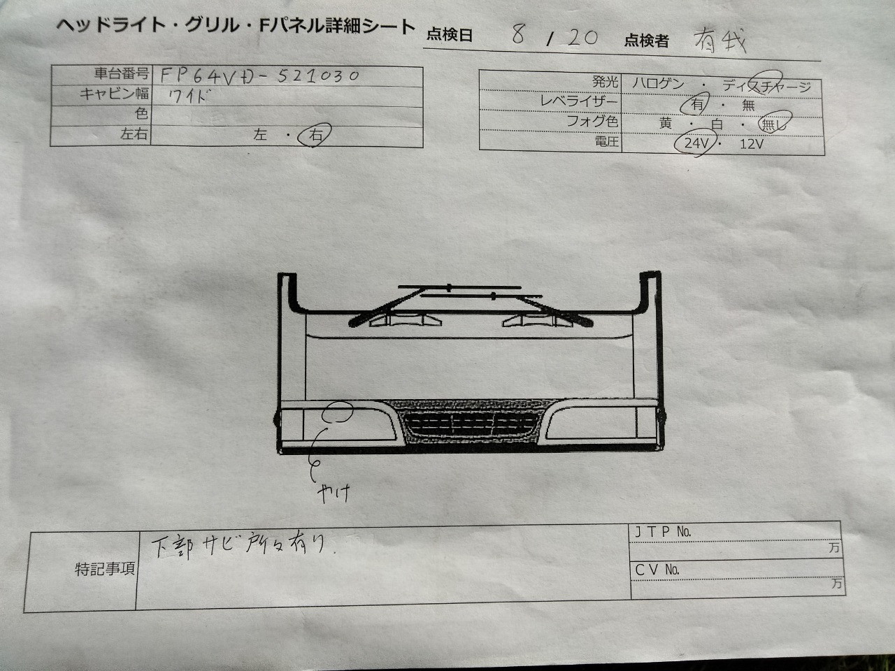 部品詳細・備考