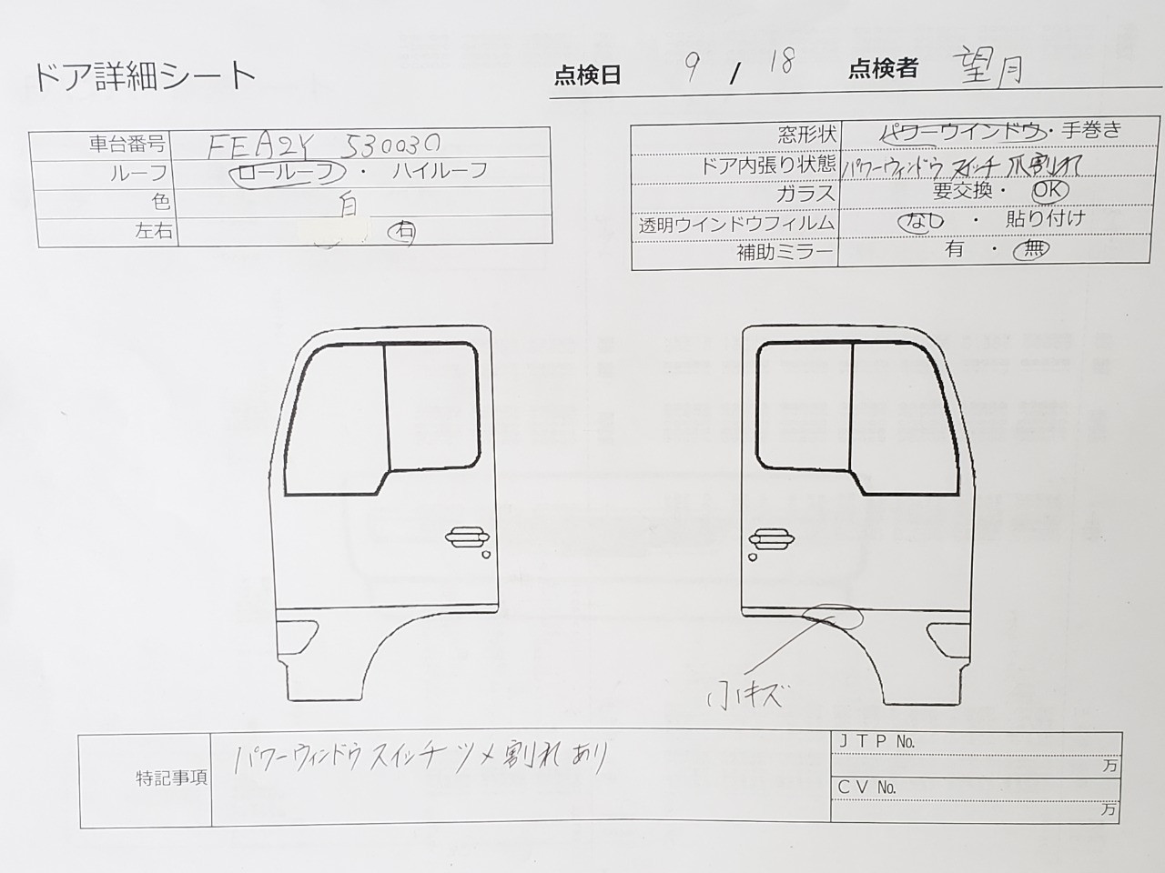 パワーウィンドウスイッチつめ割れあり